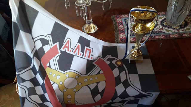 Συγκινητική ήταν η στιγμή όταν ο πρωταθλητής Ελλάδος Δημήτρης Καρατσομπαλίδης παραλαμβάνοντας την καρό σημαία μαζί με το Κύπελλο του ταχύτερου χρόνου ημέρας γύρισε στο βάθρο και αφιέρωσε την τιμητική καρό επετειακή σημαία στο Τάσο.